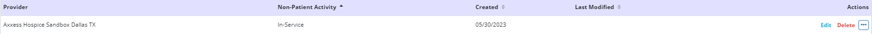 If a non-patient activity was added in error, click Delete under Actions to delete the activity.