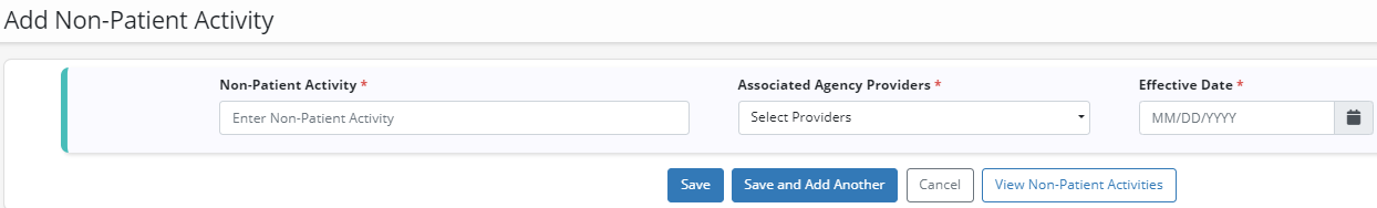 Complete the required fields and click Save to finish adding the non-patient activity.