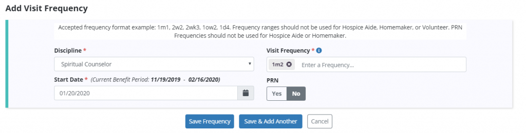 In the Add Visit Frequency box, select the discipline from the Discipline drop-down menu.