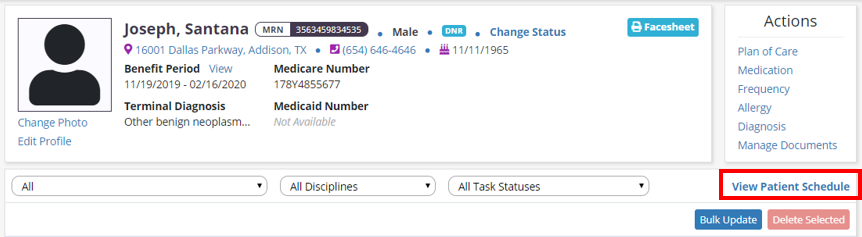 To schedule tasks, navigate to the Patient Schedule from the Patient Charts or Schedule tab.