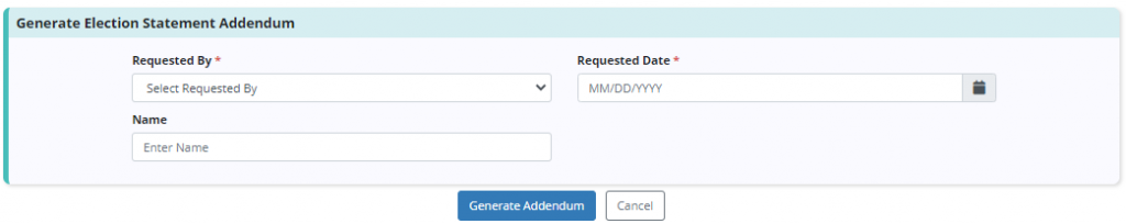 To generate an election statement addendum, users must have permission to view and edit patient charts, visits and medication information.