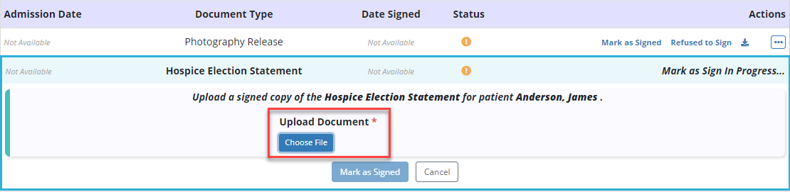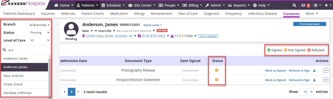 Axxess Hospice now enables users to upload, manage and track electronic consent forms and other important documents that the patient/caregiver must sign before starting hospice care.