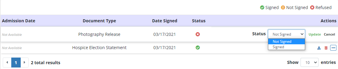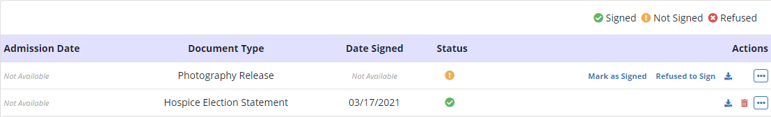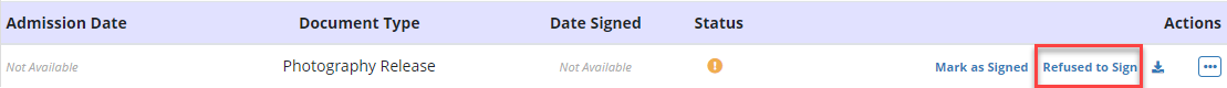 When a Refused to Sign is selected, the status will automatically change from Not Signed to Refused.