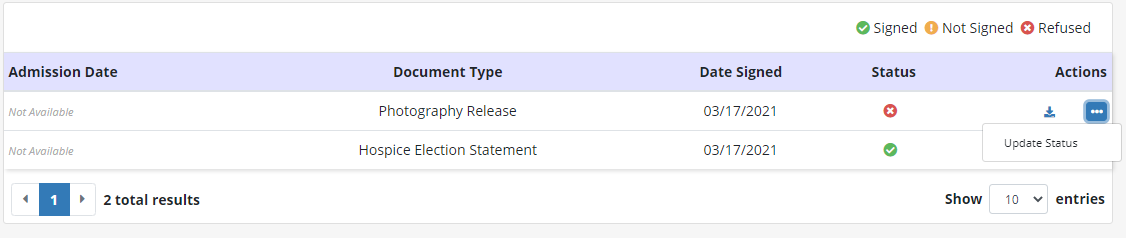 If you accidentally click Refused to Sign, select the three-dot menu under Actions and click Update Status.