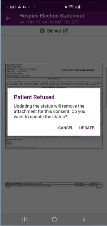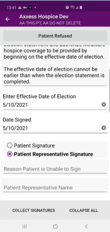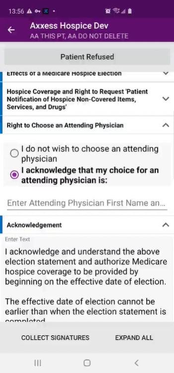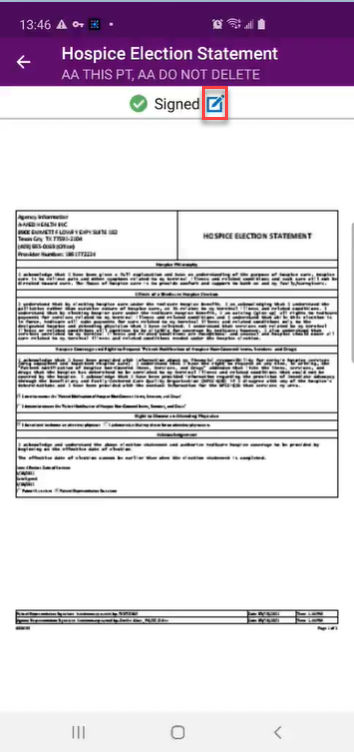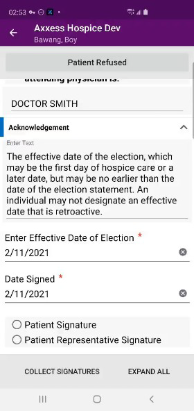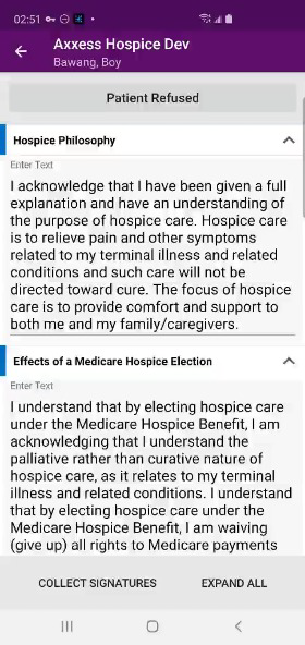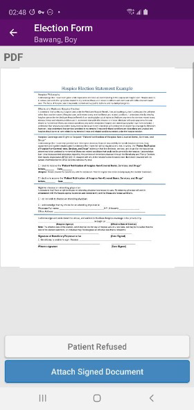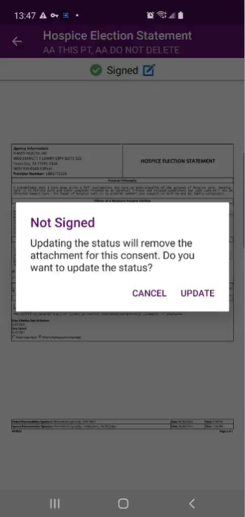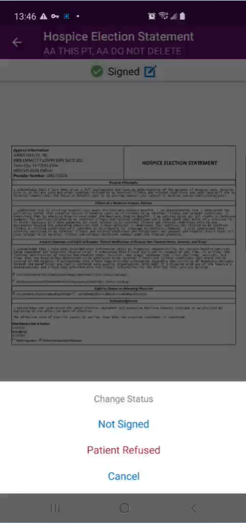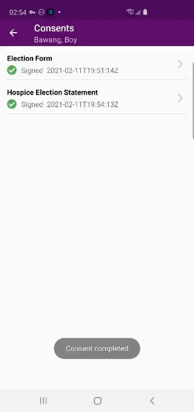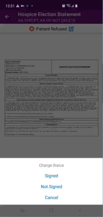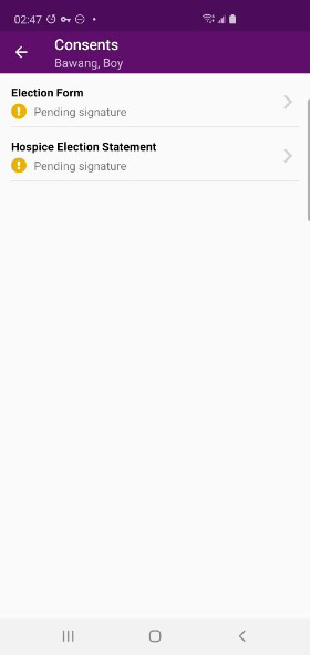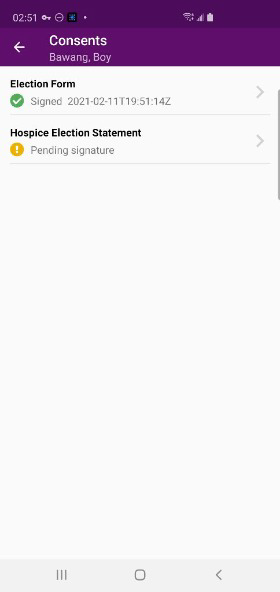 Patients can also sign hospice election statements electronically from a clinician’s mobile Android device. By enabling users to seamlessly manage electronic consent documentation, this functionality streamlines intake processes and helps organizations stay compliant.
