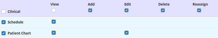 People tab ➜ People Center ➜ Edit ➜ Permissions tab ➜ Clinical ➜ Patient Chart ➜ View/Edit ➜ Save