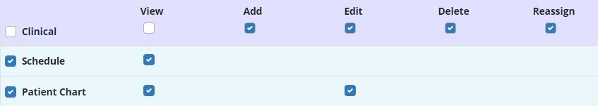 People tab ➜ People Center ➜ Edit ➜ Permissions tab ➜ Clinical ➜ Patient Chart ➜ View/Edit ➜ Save