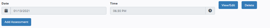Users can complete multiple assessments throughout a shift. To add an assessment, click Add Assessment. The date and time of the assessment will appear in the Date and Time fields. To edit the date, time or assessment details, click View/Edit. Click Delete to delete an assessment.