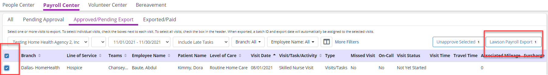 Axxess Hospice now provides a permission that enables users to export approved payroll tasks in the Payroll Center.