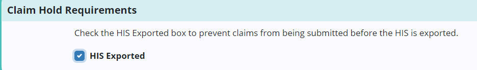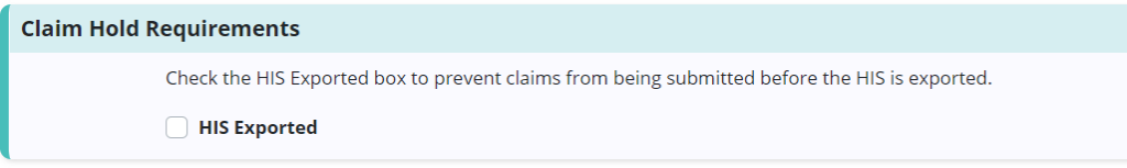 If HIS has not been exported and an user wants to stop claims from being submitted, select HIS Exported. Select Save to finish the process.