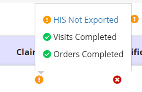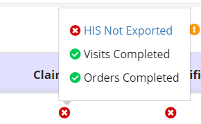 When an organization stops billing for HIS not being exported, users will see a missing sign. Users will not be able to proceed with the billing process without HIS marked as Exported or Accepted in the HIS Export History screen.