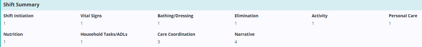 The remaining tabs will have a Shift Summary section at the top of the note.