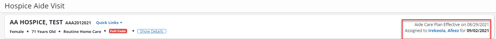 Once this feature is enabled, all future hospice aide visits will be tied to the hospice aide care plan. If a hospice aide visit is in Opened, Saved or Scheduled status when this feature is enabled, these notes will not be tied to the hospice aide care plan.