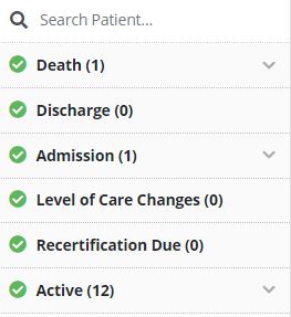 Once all patients on the agenda have been discussed and marked as reviewed, green check marks will appear on each section of the agenda.
