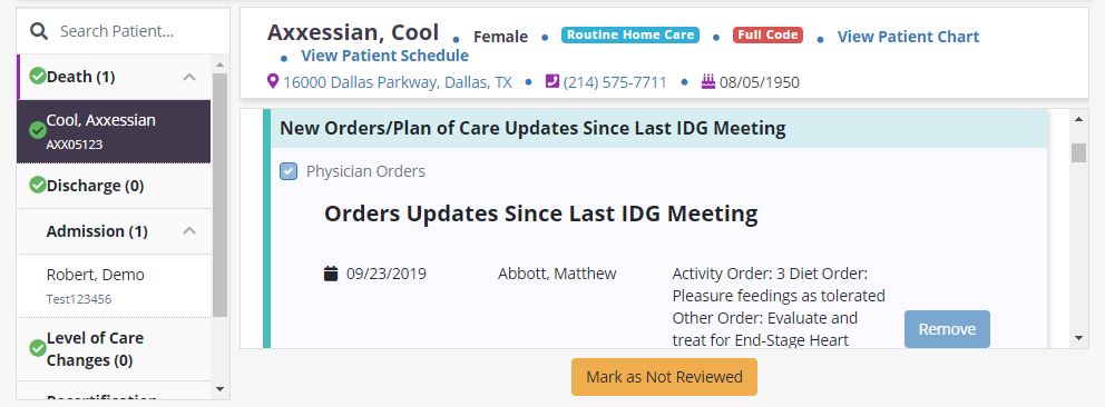 Interdisciplinary Group (IDG) meetings are critical to maintaining successful hospice operations. Axxess Hospice enables agencies to streamline IDG operations and seamlessly conduct IDG meetings from start to finish within the platform.