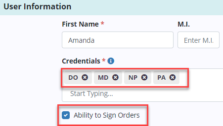 The Ability to Sign Orders checkbox must also be selected in the physician’s user profile.