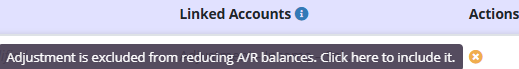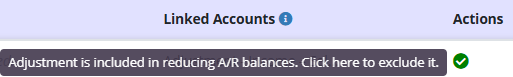 By default, adjustments with a checkmark are included in reducing the account receivable balance. Adjustments with an X are excluded.