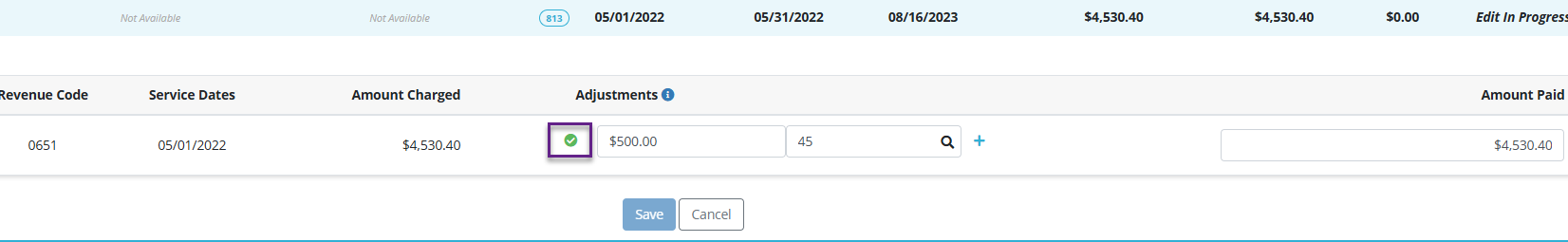 When hovered over the checkmark, a message appears. Select the checkmark to exclude the adjustment.