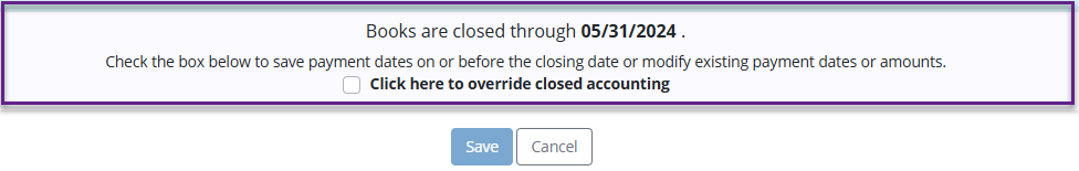 If the remittance date is on or before closed accounting, the following message appears: