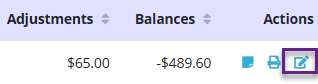 To toggle an adjustment in collections, select the edit icon under Actions.
