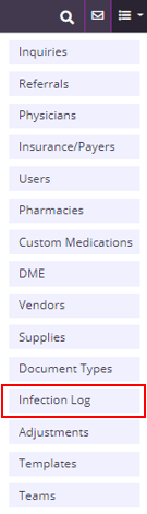 The infection log in Axxess Hospice provides a list of all infection reports that have been added for the agency. To view the infection log, navigate to the lists menu in the top right corner of the screen and select Infection Log.