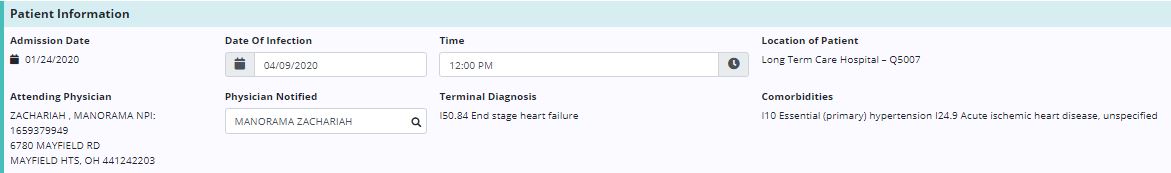| Patient | Displays the name of the patient with the reported infection | ||