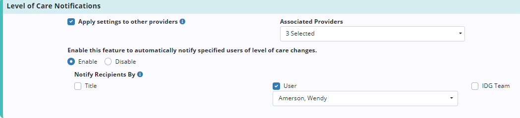 Once the appropriate settings have been selected, click Save at the bottom of the screen. Level of care and patient status notifications will be sent according to the setup.