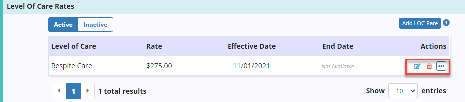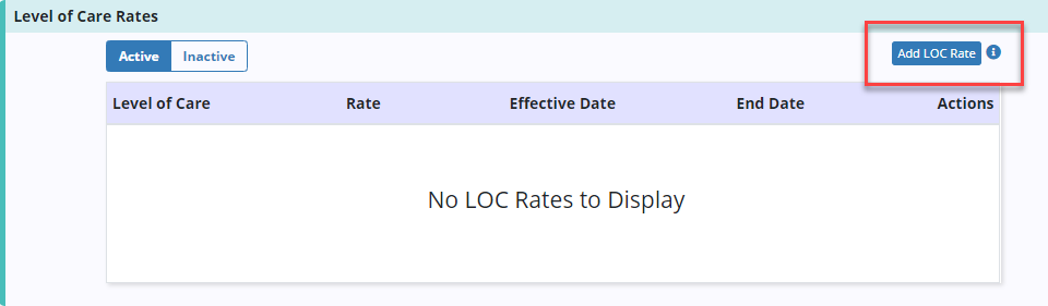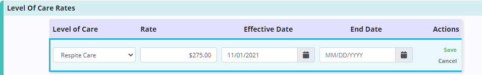 Enter the Level of Care, Rate, Effective Date and End Date if applicable, and click Save.