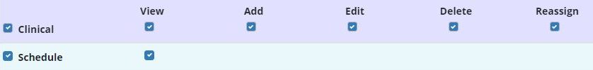 To give a user scheduling permissions, edit the user’s profile and navigate to the Permissions tab. In the Clinical section, check the box next to the Schedule permission. Click Save to finish granting the permission to the user.