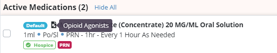 Hover over the prescription icon in the Medication Profile to view the medication’s classification.