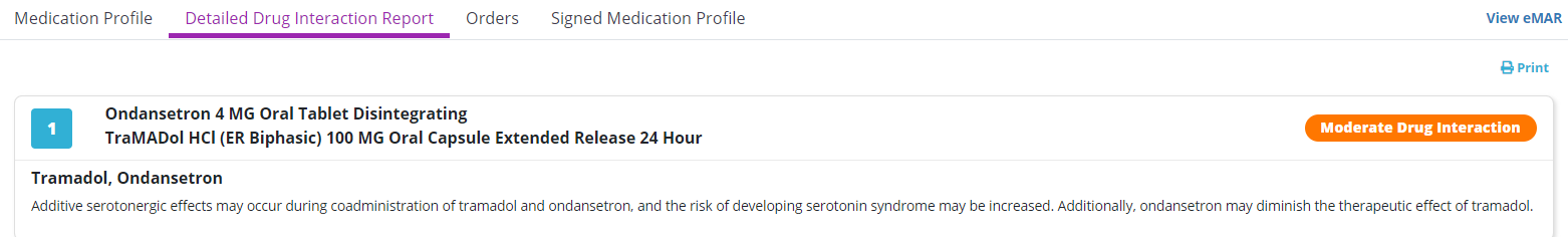 Medications that have not been selected from the medication database will be excluded from drug interactions and can be seen at the top of the medication list after selecting Detailed Drug Interaction Report.