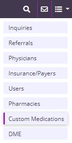 To create a medication order set, navigate to the list menu and select Custom Medications.