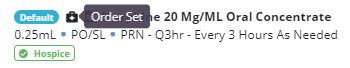 The medications will appear in the patient’s active medications list and in the patient’s eMAR. Medications added through an order set will appear with an icon, so users can quickly identify which medications were added through a medication order set.