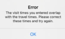 When the visit or travel time overlaps with another visit on the clinician’s schedule