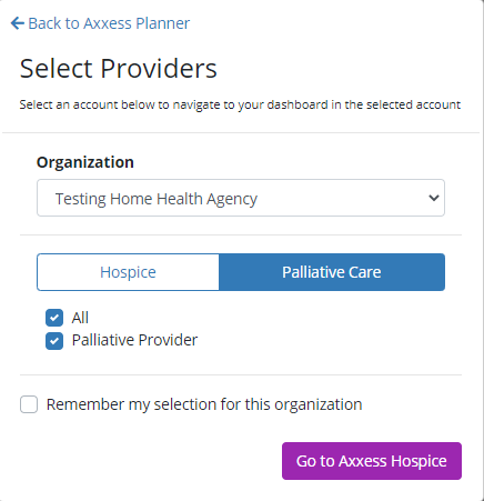 Axxess Hospice now enables organizations to identify their providers’ lines of service (hospice or palliative care) and filter the system by provider and line of service upon logging in.