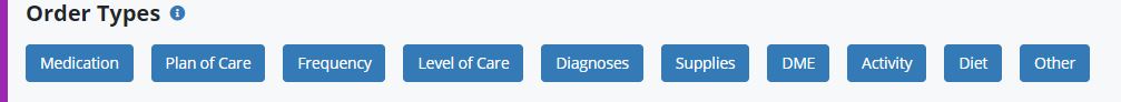 Medications can now be updated through Physician Orders. To update a patient’s medications, navigate to the Physician Order and select the Medication button under Order Types.