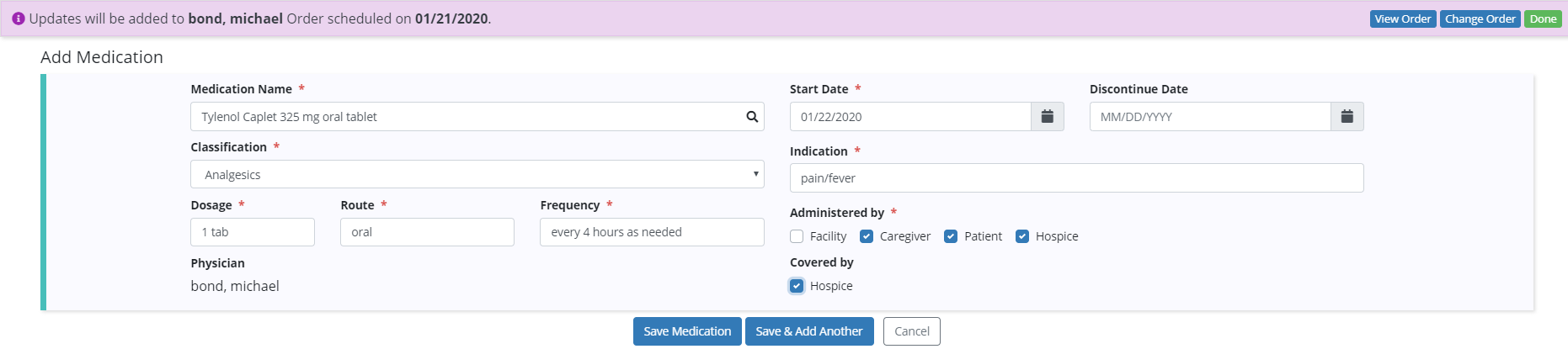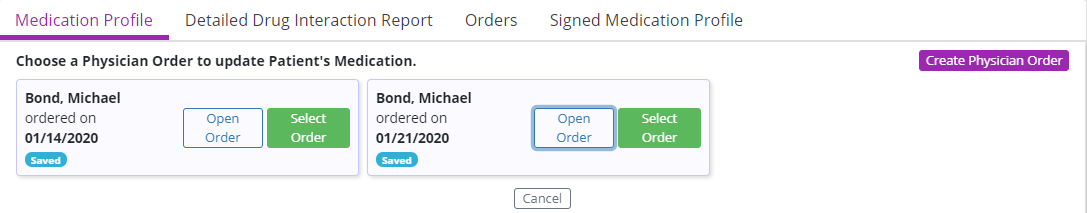 Once a Physician Order is selected, update the patient’s medications as needed.