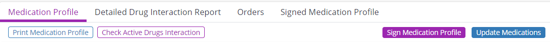 Medications can also be updated through Patient Charts. In the Patient Chart, select Medication from the Actions menu and click Update Medications on the right side of the Medication Profile.
