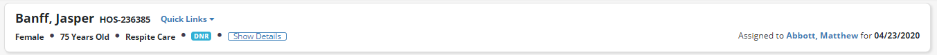 | Terminal Diagnosis | The patient’s terminal diagnosis is now visible in the patient header and can easily be referenced for clinical and operational needs. | ||