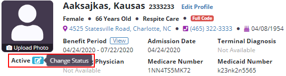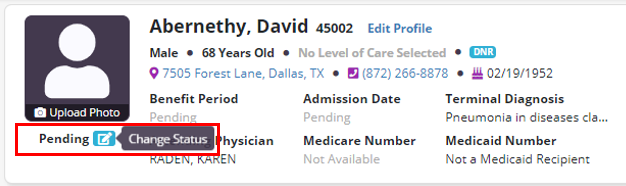 Click the edit icon next to the patient’s status under the patient’s photo.