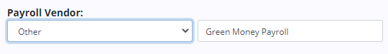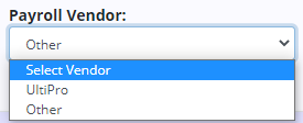 If your payroll vendor is not present in the drop-down menu, select Other and enter the name of your payroll vendor in the text field next to the Payroll Vendor menu. The selected payroll vendor can be changed any time in Company Setup.