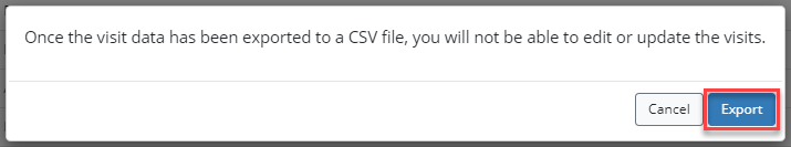 Click Export in the confirmation pop-up to finish exporting the selected visits/tasks.