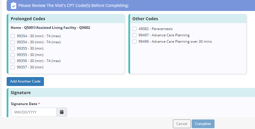Axxess Hospice now provides enhanced billing functionality to help physicians select the appropriate procedure codes at the time of each visit. This functionality enables organizations to ensure billing code accuracy for services provided by physicians.