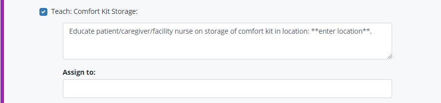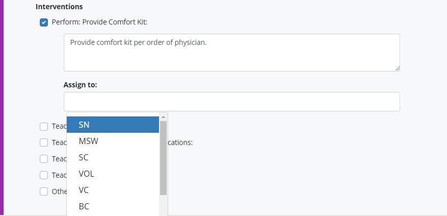 When entering interventions for the goal, identify which discipline is responsible for completing the intervention by selecting one of the following options from the Assign to: drop-down menu: