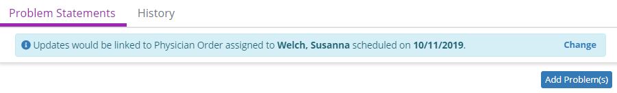 Select an existing Physician Order or create a new Physician order to make changes to the patient’s Plan of Care.