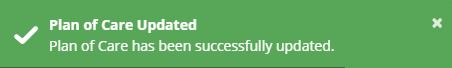 Once you select Save, a green confirmation message will confirm that the changes have been applied. Updates to the problem statement, goals, and interventions will flow to the Plan of Care Profile and Physician Order.