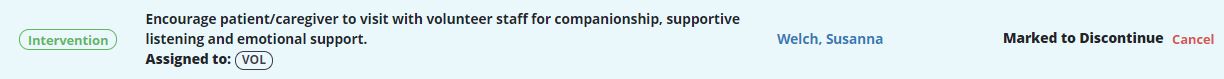 The intervention will be labeled as Marked to Discontinue. If you do not want the intervention discontinued, select Cancel.