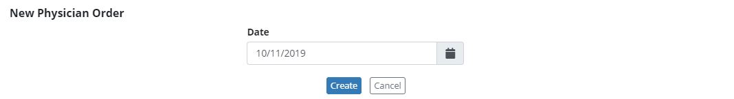 To create a new Physician Order, select Create next to New Physician Order, and enter a date for the new Physician Order.