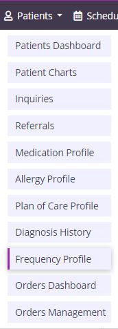 The Frequency Profile can also be accessed from the Patients tab at the top of the screen and from the Actions menu in the Patient Chart.