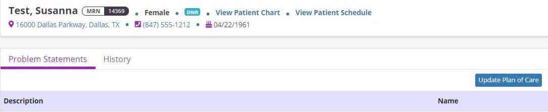 Once the Physician Order is complete, the new level of care will appear in the Patient Chart header and replace the previous level of care on the Comprehensive Plan of Care.